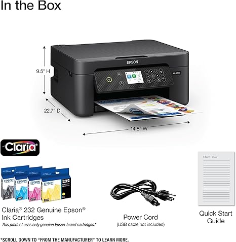 - Remarkable Print Quality for Home and Photo Printing — Epson’s leading-edge imaging technology produces crisp documents, vibrant borderless photos with rich colors, and more